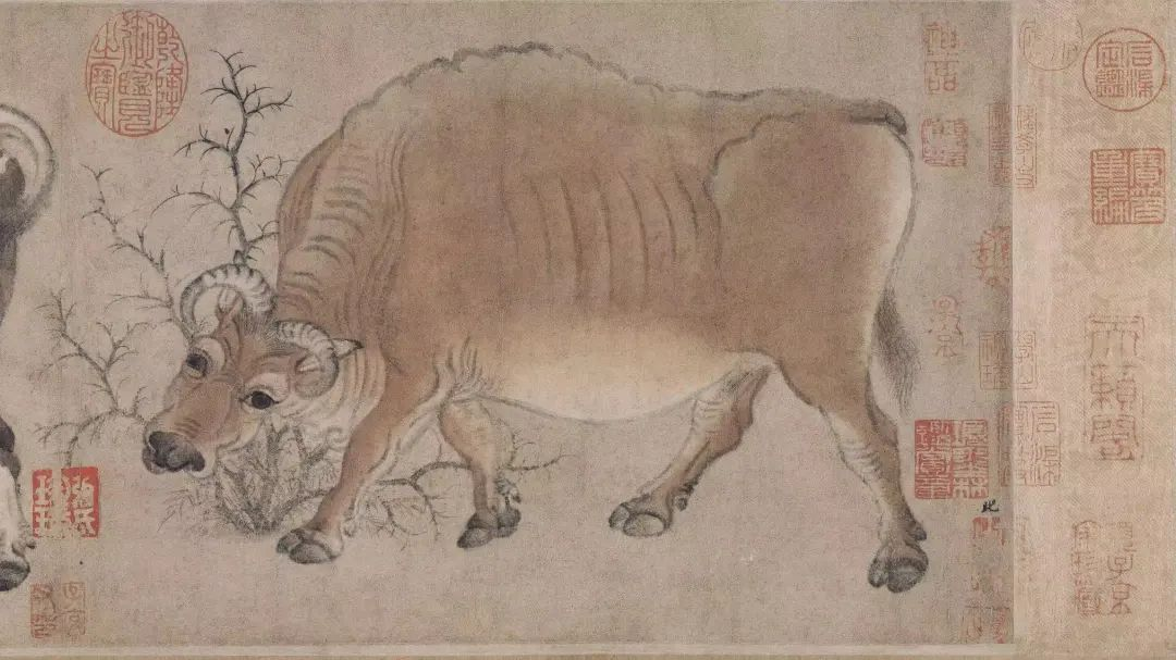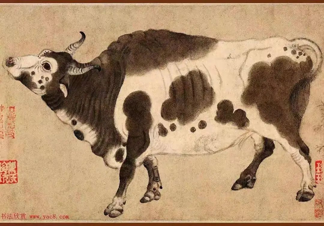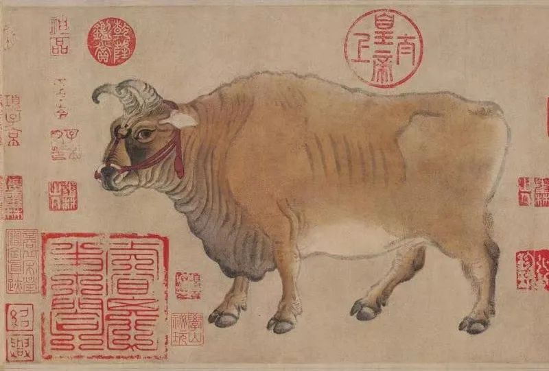 历史与文化价值。农耕文明的象征:牛在古代是农耕社会的重要生产力,五牛象征“五谷丰登”,反映了唐代对农业的重视。文人精神的寄托:韩滉通过牛的勤劳、坚韧品格,表达了对士人品质的赞美,体现了唐代文人的精神追求。艺术传承的标杆:作为现存最早的纸本绘画,《五牛图》为后世畜兽画提供了技法范本,其艺术理念影响了宋元明清的画家。