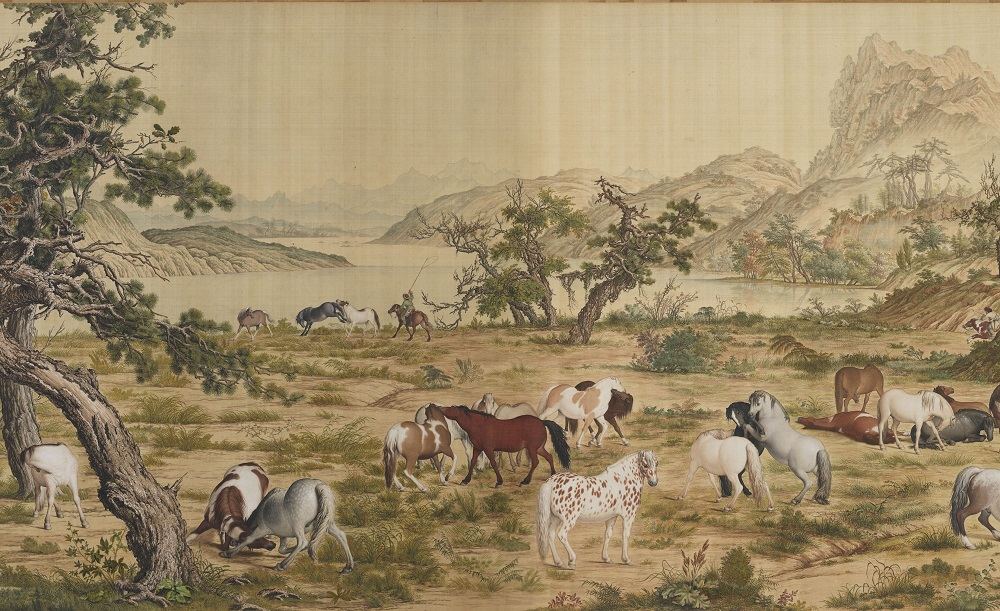 《百骏图》是清代宫廷画家郎世宁的经典画作,以中西融合的笔法生动描绘了百匹骏马的动态,展现了极高的艺术价值。