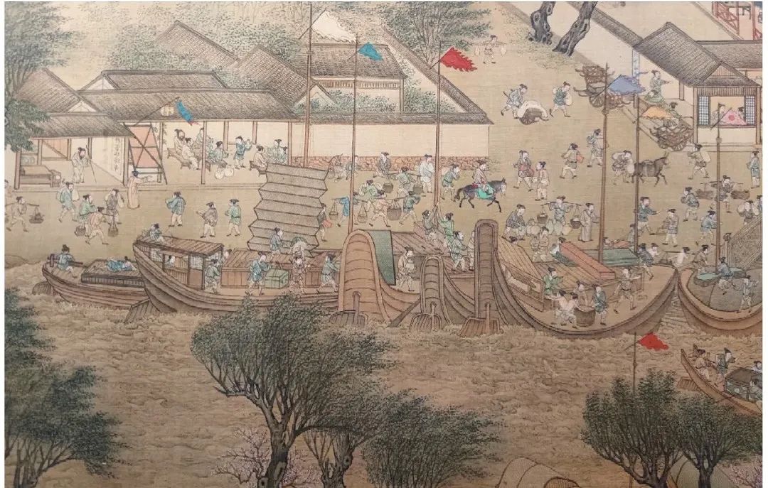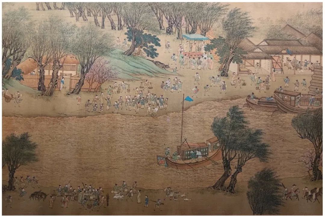 节日习俗的古今碰撞:画中扫墓队伍轿顶插柳、纸马店冥器交易,与现代清明插柳、放风筝习俗形成传承链。而明代摹本中轿子改用红绸装饰,则体现江南“厚人薄鬼”的独特风俗演变。
